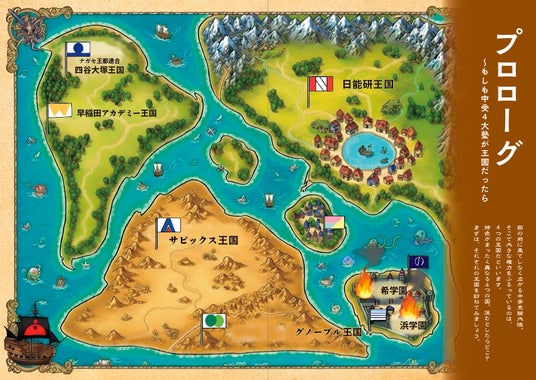 プロローグには「中受4大塾が王国だったら」と題した我が子に合う塾が見つけられる解説漫画が!