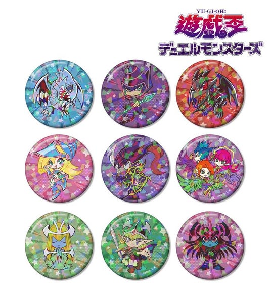 青眼の白龍、ブラック・マジシャン、真紅眼の黒竜、ブラック・マジシャン・ガール、カオス・ソルジャー、ハーピィ・レディ三姉妹、ホーリー・エルフ、エルフの剣士、マジシャン・オブ・ブラックカオスのイラストをトゥーンモンスターになったイメージで描き起こし、ホログラム加工を施した缶バッジに仕上げました。