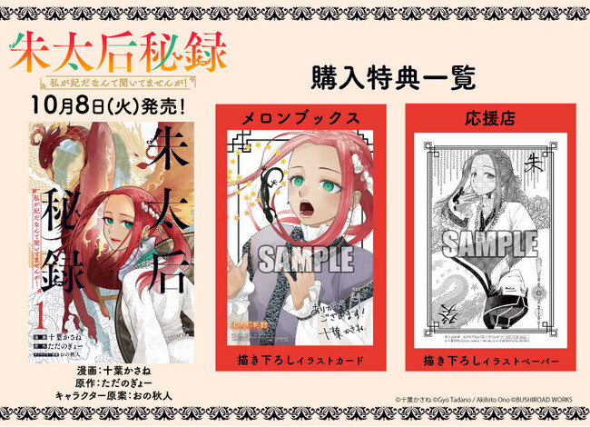 株式会社ブシロード(本社:東京都中野区、代表取締役社長:木谷高明)のグループ会社にあたる株式会社ブシロードワークス(本社:東京都中野区、代表取締役社長:新福恭平)は、「コミックグロウル」にて好評連載中の『朱太后秘録 私が妃だなんて聞いてませんが!』第1巻が本日10月8日(火)より発売することをご案内致します。また、発売を記念した電子書籍フェアも実施中です。