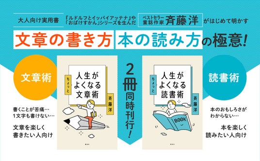 40年にわたり児童文学の第一線で活躍し続ける作家・斉藤洋による、書くことや読むことを楽しむための実用書が発売されました。多くの名作を生み出した作家が語る「文章の書き方」「本の読み方」の極意とは。『人生がちょっとよくなる文章術』『人生がちょっとよくなる読書術』(著:斉藤洋)、2冊同時発売です。