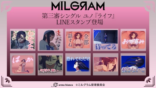 株式会社アルマビアンカはDECO*27×OTOIRO×山中拓也による視聴者参加型音楽プロジェクト『MILGRAM -ミルグラム-』のLINEスタンプを配信いたします。