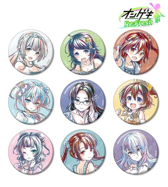 星咲 あかり、藤沢 柚子、三角 葵、高瀬 梨緒、藍原 椿、結城 莉玖、早乙女 彩華、桜井 春菜のイラストを新たなタッチで魅力的に表現し、缶バッジに仕上げました。