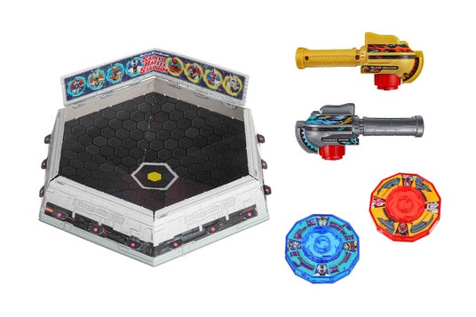 バトルスピンブレードとバトルスピナーが2個ついた超豪華セットです。最強バトルスタジアムを組み立てて、1冊で2人バトルが叶うスペシャルな付録です。