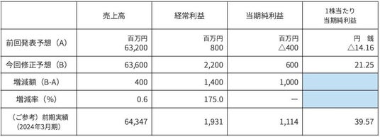 3. 2025年3月期 通期連結業績予想数値の修正(2024年4月1日~2025年3月31日)