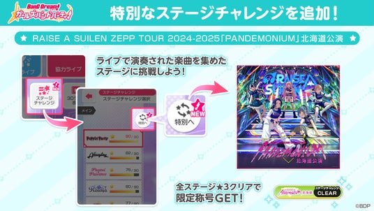 スマートフォン向けゲーム「バンドリ! ガールズバンドパーティ!」内、ステージチャレンジ「特別」に、本ライブで演奏された楽曲を集めたステージを追加しました。
