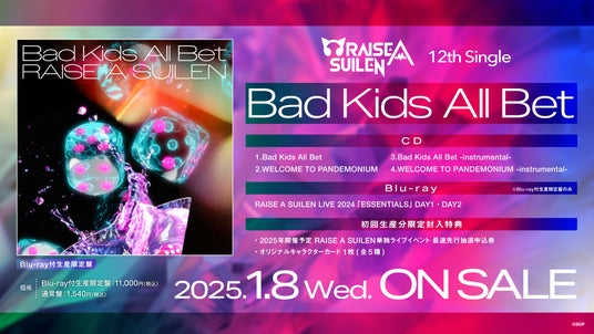 - RAISE A SUILEN 12th Single「Bad Kids All Bet」 1月8日(水)リリース