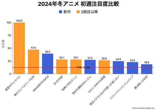 2024年秋アニメのシーズンが12月で終了し、新たに2025年冬アニメの放送が始まりました。前シーズンでは『ダンダダン』が初週から大きな話題を呼び、終了まで注目度の高水準を維持しましたが、2025年冬アニメでは一体どの作品が“初動”で視聴者の目を引いているのでしょうか。