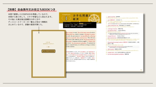 本書では、その考えのもと、以下の5つの切り口(=COMPASS)を暗唱すべきパッセージの形で紹介し、実際の解答でCOMPASSを活用し、文章を組み立てていく方法を伝授します。