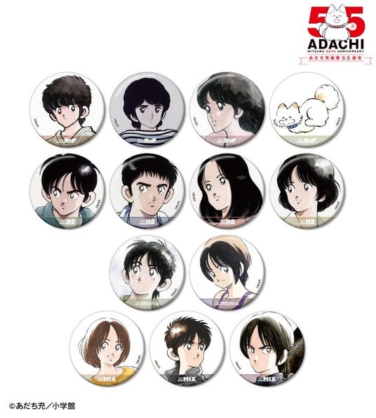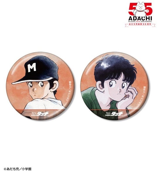 あだち充作品のイラストをメタリック仕様の缶バッジ2個セットに仕上げました。