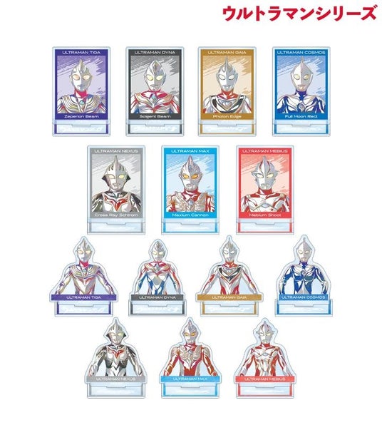 ウルトラマンティガ、ウルトラマンダイナ、ウルトラマンガイア、ウルトラマンコスモス、ウルトラマンネクサス、ウルトラマンマックス、ウルトラマンメビウスを新たなタッチで魅力的に表現し、アクリルスタンドに仕上げました。