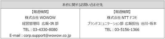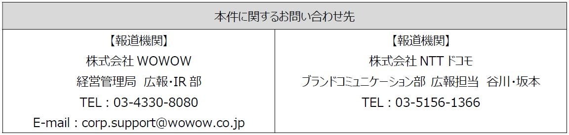 WOWOW は「エンターテインメントを通じ人々の幸福と豊かな文化の創造に貢献する」という企業理念の下、放送・配信している音楽ライブをはじめ、オリジナルドラマなど、質の高いコンテンツの提供により高い評価を得ております。本提携を通じてドコモだけでは提供できなかった音楽ライブおよび関連コンテンツを多くのお客さまにお届けできる事をとても心強く感じております。さらに今後は両社で超大作オリジナルドラマの共同制作を進め、今まで実現できなかった独創的で質の高いコンテンツをこれまで以上の規模とスピードで生み出してまいります。