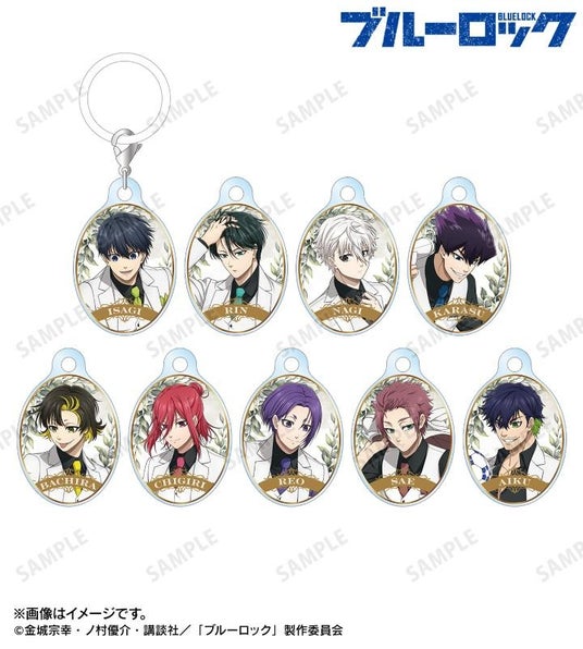潔 世一、糸師 凛、凪 誠士郎、烏 旅人、蜂楽 廻、千切 豹馬、御影 玲王、糸師 冴、オリヴァ・愛空の描き下ろしイラストをダイカットのアクリルチャームに仕上げました。