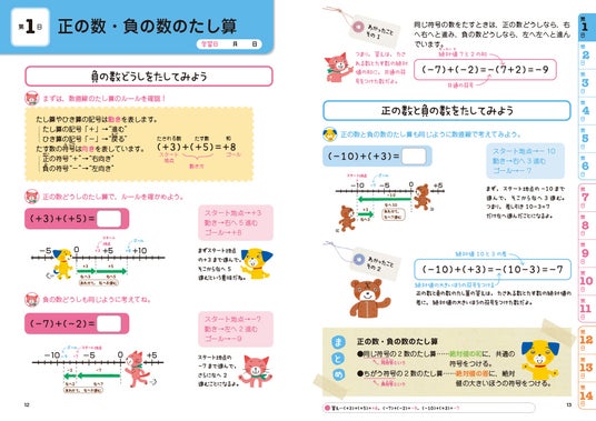 さらに、イラストや図解を豊富に取り入れたわかりやすい解説で、学習がスムーズに進みます。小学校の内容を振り返りながら、中学1年生前半の内容を自然に先取りできるのも魅力です。