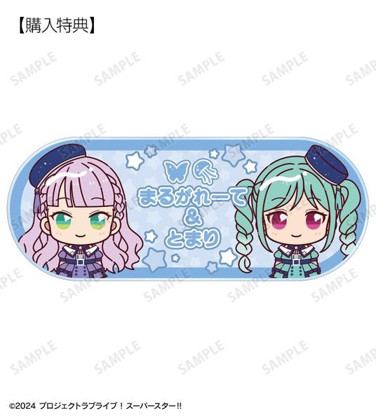 当商品を1BOX、または単品にて1BOX相当数ご注文ごとに、予約購入特典として「1期生 ちょこんと! スーパースター!!ver. レクタングル缶バッジ AMNIBUS限定特典」を付属いたします。