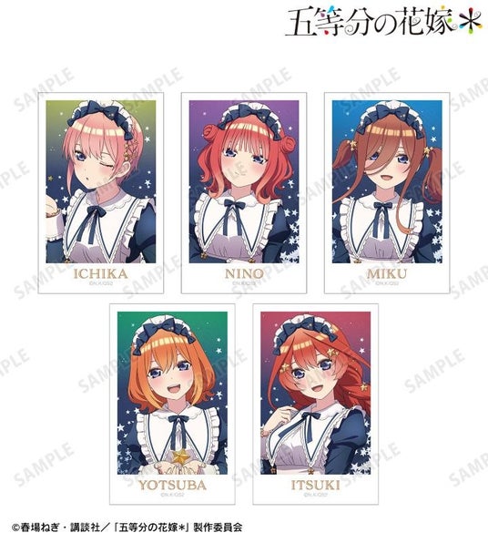 中野一花、中野二乃、中野三玖、中野四葉、中野五月の描き下ろしイラストをインスタントカメラ風のイラストカード5枚セットに仕上げました。