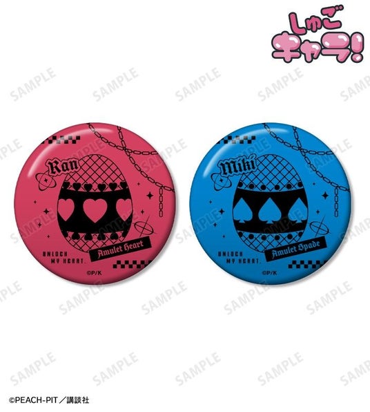ラン、ミキ、スゥ、ダイヤ、ヨル、キセキ、イル、エルのしゅごたまのモチーフを缶バッジ2個セットに仕上げました。