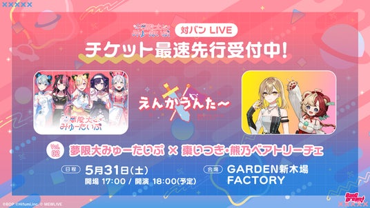 5月31日(土)にGARDEN 新木場 FACTORYにて開催する、夢限大みゅーたいぷ 対バンライブ「えんかうんた~」Vol.2のチケット最速先行抽選が現在受付中です。