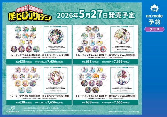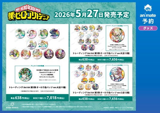 ※2月16日(月)より予約開始予定のECサイト「AMNIBUS」では、BOX購入特典として「芦戸三奈 Ani-Art 第5弾 75mmホログラム缶バッジ AMNIBUS限定特典」を予定しております。