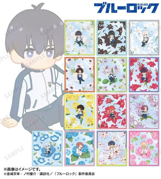 潔 世一、糸師 凛、凪 誠士郎、雪宮 剣優、乙夜 影汰、烏 旅人、蜂楽 廻、千切 豹馬、御影 玲王、氷織 羊、糸師 冴、オリヴァ・愛空、士道 龍聖のイラスト、各キャラクターをイメージした花をボタニカルデザインに落とし込んで繊細なタッチで新たに描き起こし、アクリルカードに仕上げました。