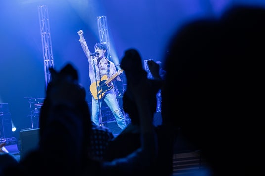 「Driving All Night」では、ギターを背中に回して、言の葉を研ぎ澄ましていく。時に全身でリズムを取り、時に自分の内面をみつめるように下を向き歌う。凄腕のバンドメンバーに支えられながら、走り続けることを表明するかのような骨太なパフォーマンスに痺れた。