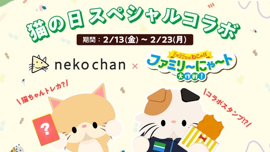 本企画では、ファミリーマートが展開する「あなたのねこがトレカになる!?」Xキャンペーンと連動し、特設サイトでランダムに作成できる全22種類のトレカデザインのうち、nekochanオリジナルデザインのトレカが1種類登場します。