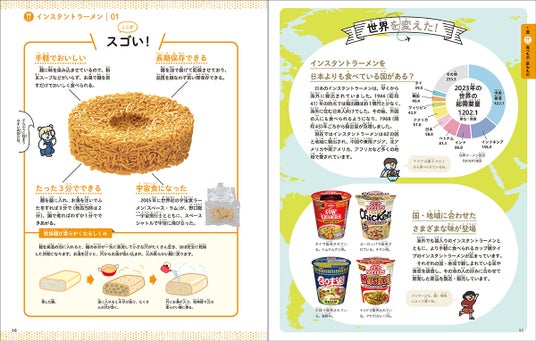 インスタントラーメンや新幹線など、身近にあって実は日本生まれのもの30点を紹介。写真や図表、イラストをふんだんに使用し、1点1点を丁寧に説明しています。