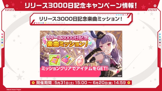 5月31日(土)15時から「リリース3000日記念楽曲ミッション!」を開催いたします。