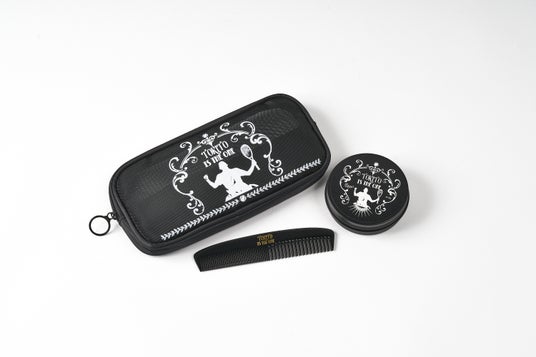 今回は、このポマードの単品販売に加え、日々のスタイリングを格上げする「コーム」と「ポーチ」を合わせた国際線機内持ち込み可能なグルーミング3点セットをご用意しました。