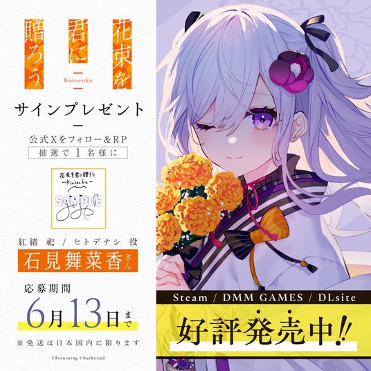 木谷社長からの後押しを受けて、ますます盛り上がる『花束を君に贈ろう-Kinsenka-』はSteam/DMM GAMES/DLsiteにて好評販売中です!