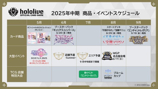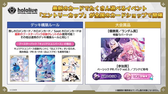 「博衣こより」や「ラプラス・ダークネス」をはじめ、多くのタレントがカードになって登場!また、本商品の発売を記念した新イベント「エントリーカップ」が7月より開催!