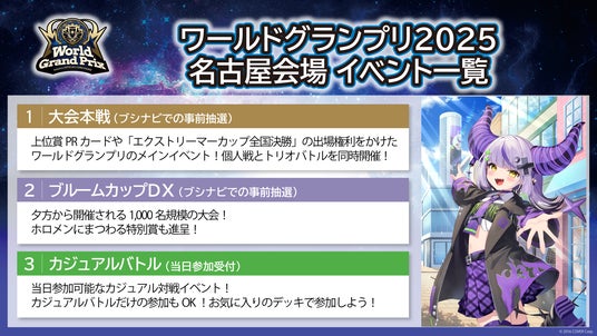 WGP2025シリーズ最後となる大会!全国決勝の権利戦、当日参加可能なカジュアル対戦イベントを実施!ブルームカップDXでは特別賞を進呈!