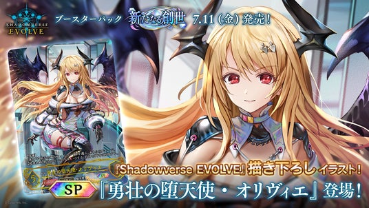 株式会社ブシロード(本社:東京都中野区、代表取締役社長:木谷 高明)と株式会社Cygames(本社:東京都渋谷区、代表取締役社長:渡邊 耕一)は、7月11日(金)に、『Shadowverse EVOLVE』より、ブースターパック「新たなる創世」を発売することをお知らせいたします。報道関係の皆様におかれましては、ぜひ誌面やWeb媒体で本情報をお取り上げいただけますようお願い申し上げます。