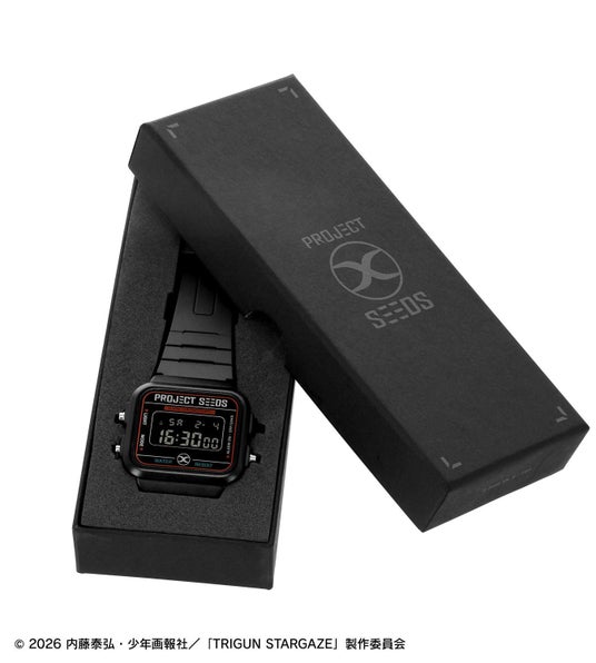 ブラックを基調としたボディに、ストラップと文字盤の「プロジェクトSEEDS」ロゴが映えるデザインで、ユニセックスかつカジュアルに使いこなせるコンセプトに仕上げました。