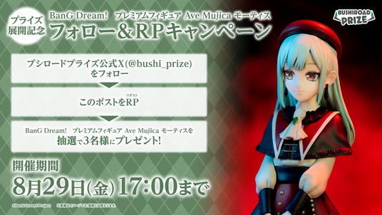 株式会社ブシロード(本社:東京都中野区、代表取締役社長:木谷高明)のグループ会社にあたる株式会社ブシロードクリエイティブ(本社:東京都中野区、代表取締役社長:成田耕祐)は、「BanG Dream! プレミアムフィギュア Ave Mujica モーティス」を2025年8月22日(金)から全国のゲームセンターに順次展開いたします。