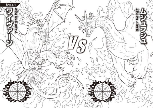 8.ドラゴン最強王図鑑 ぬりえ 名バトル8 ヴリトラ VS フェルニゲシュ
