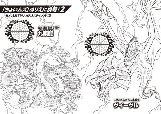 11.ドラゴン最強王図鑑 ぬりえ ちょいムズ メスター・ストゥアワーム VS ケツァルコアトル/九頭龍 VS ヴイーヴル