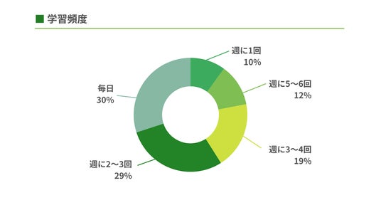 調査の結果、最も多かった学習時間は「1日30~60分」でした。また、学習頻度も「毎日」または「週2~3回」と、無理のないペースで継続している人が多い傾向にあります。長時間の集中学習ではなく、短時間でも継続する学習スタイルが主流であることがわかります。