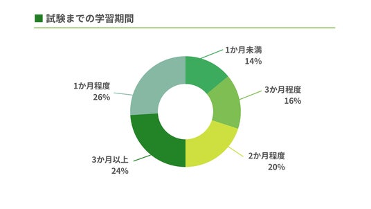 初級レベルは1日30~60分/1~3か月で受験するケースが多数