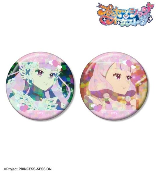 プリンセス・ヴィオラ、風花すみれ、プリンセス・ネージュ、風花りりの印象的なシーンをホログラム加工を施した缶バッジ2個セットに仕上げました。