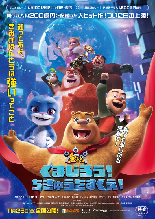 世界でも100以上の国と地域で放送・配信され、劇場版はシリーズ累計興行収入が約1500億円を超え毎回大ヒット!本作『くまじろう!ちきゅうをすくえ! ~熊出没~』も、興行収入約200億円を記録しています。(2025年6月時点のレート)
