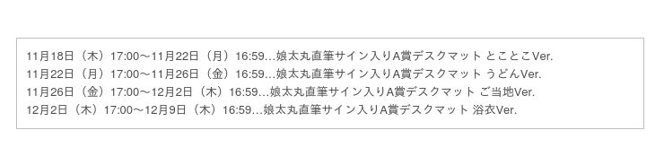 【10連セット】を購入すると、期間別にそれぞれ抽選で1名様に「娘太丸直筆サイン入りA賞デスクマット」をプレゼント!!