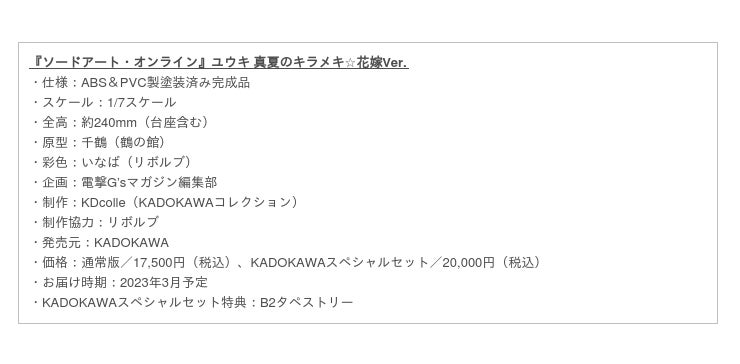 ・「ユウキ 真夏のキラメキ☆花嫁Ver. KADOKAWAスペシャルセット」商品ページ