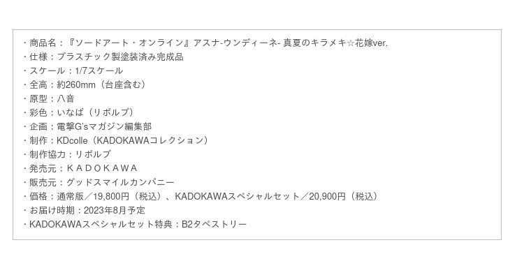 『ソードアート・オンライン』アスナ-ウンディーネ- 夏のキラメキ☆花嫁ver.について
