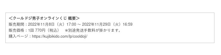 株式会社KADOKAWA(本社:東京都千代田区、代表取締役社長:夏野 剛 以下KADOKAWA)は、運営するオンラインくじサービス「くじ引き堂」において、TVアニメ「クールドジ男子」のオリジナル商品が手に入る「クールドジ男子オンラインくじ」を、2022年11月8日(火)17時より販売します。