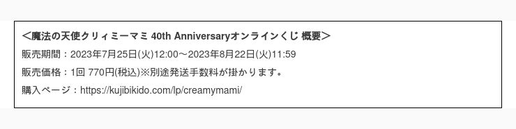 「魔法の天使クリィミーマミ」より放送開始から40周年を記念した、オンラインくじが登場!!