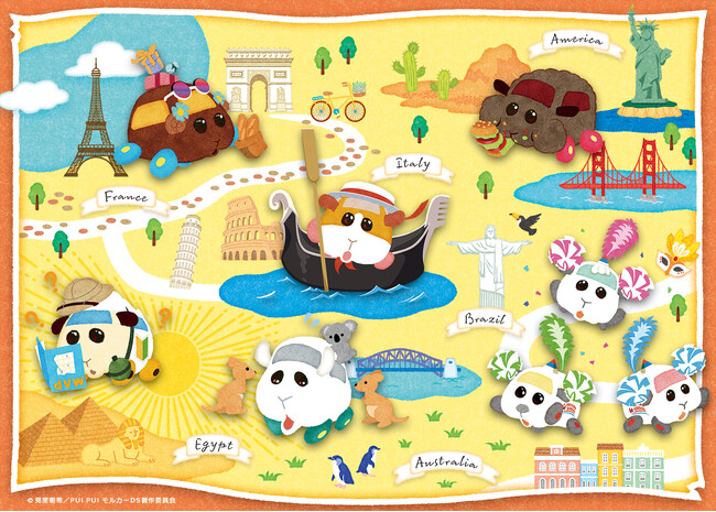 本イベントは、「世界旅」をテーマに、イタリア・ヴェネツィアの名物ゴンドラに乗って旅を楽しむモルカーや、エジプトで冒険の旅に出かけるモルカーなどの描き下ろしイラストを使用したグッズを多数展開。