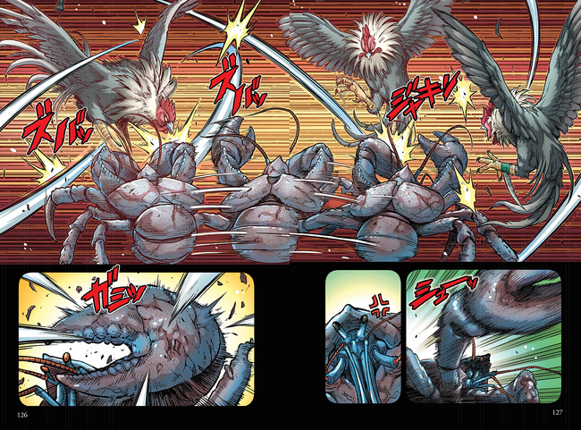 ナイフを装備して最強戦士と化したニワトリと、かたい木の実もくだくはさみを持つヤシガニの、超危険な武器バトル!