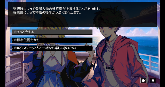 ストーリーは一本道ではなく、選択や行動の成否によって分岐が発生します。