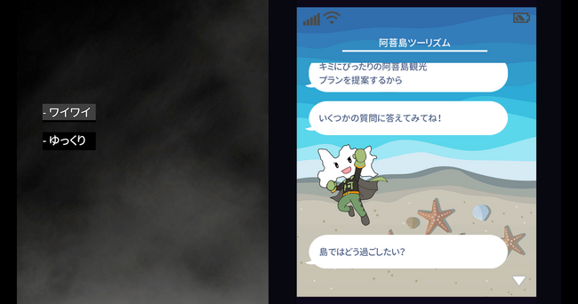 『Cthulhu Mythos ADV 呪禍に沈む島』は、クトゥルフ神話をモチーフとした、ホラーダイスロールアドベンチャーです。テーブルトークRPGのように、「能力」と「運」そして「ダイスロール」が物語の展開を左右します。