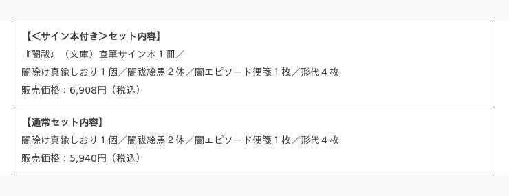 『闇祓』の直筆サイン本が付いたセットも数量限定でご用意しました。ぜひお見逃しなく!